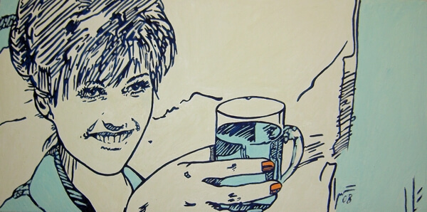 EIGHT AND A HALF, light, luminophore, acrylic, 100×50 cm, 2008, sold